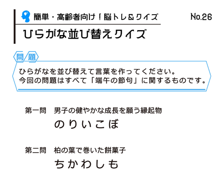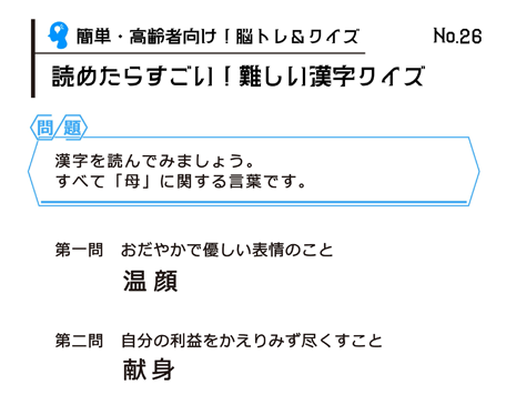 毎月「新作」の「脳トレ問題・クイズ」をご用意しております!