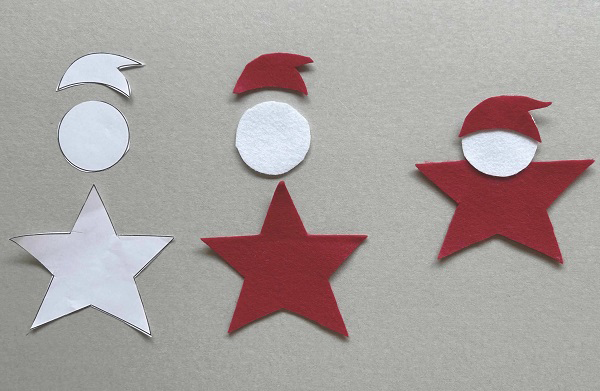3.型紙(頭用)を用いて、胴体部分と同様にゆきだるまの顔部分を3個作ります。
