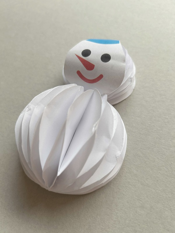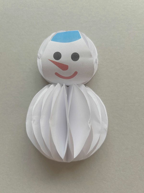 4.ゆきだるまのパーツから切り抜いた顔をつけます。