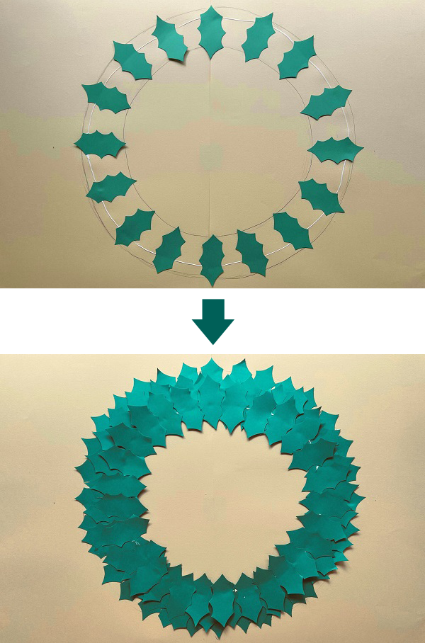 リースの輪を大きくすれば、大きなリースが作れます。飾るスペースにあわせて制作しても楽しい作品です。